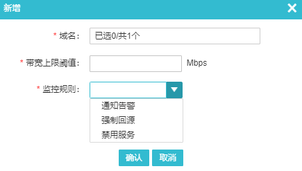 支持实时监控域名带宽,当监控域名的带宽超出所设定的上限时,执行相应规则并发送告警。