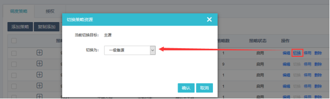 策略配置为手动模式时,且策略在启用时,切换按钮方可操作。