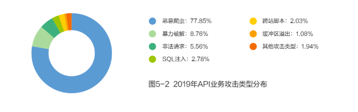2019年,网宿平台共监测并拦截30.33亿次针对API业务的攻击,其中77.85%的攻击为恶意爬虫攻击。开放式API接口的广泛应用,在为各类互联网产品的发展提供便利的同时,也逐渐成为黑客新的攻击点。