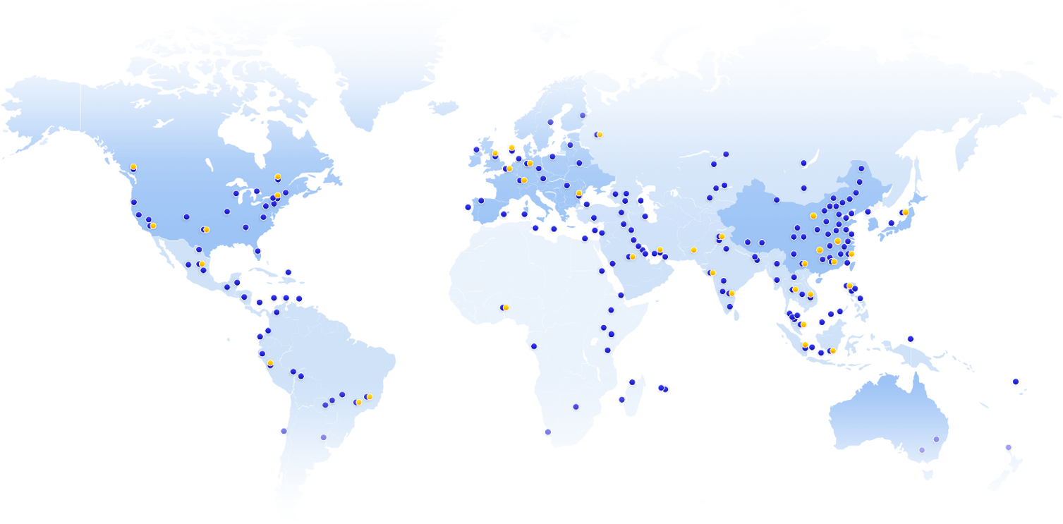 全球2800+节点,800+海外节点,覆盖欧美/日韩/东南亚等关键地域,与200+海外运营商合作。针对游戏、直播、电商、AI等业务定制方案。